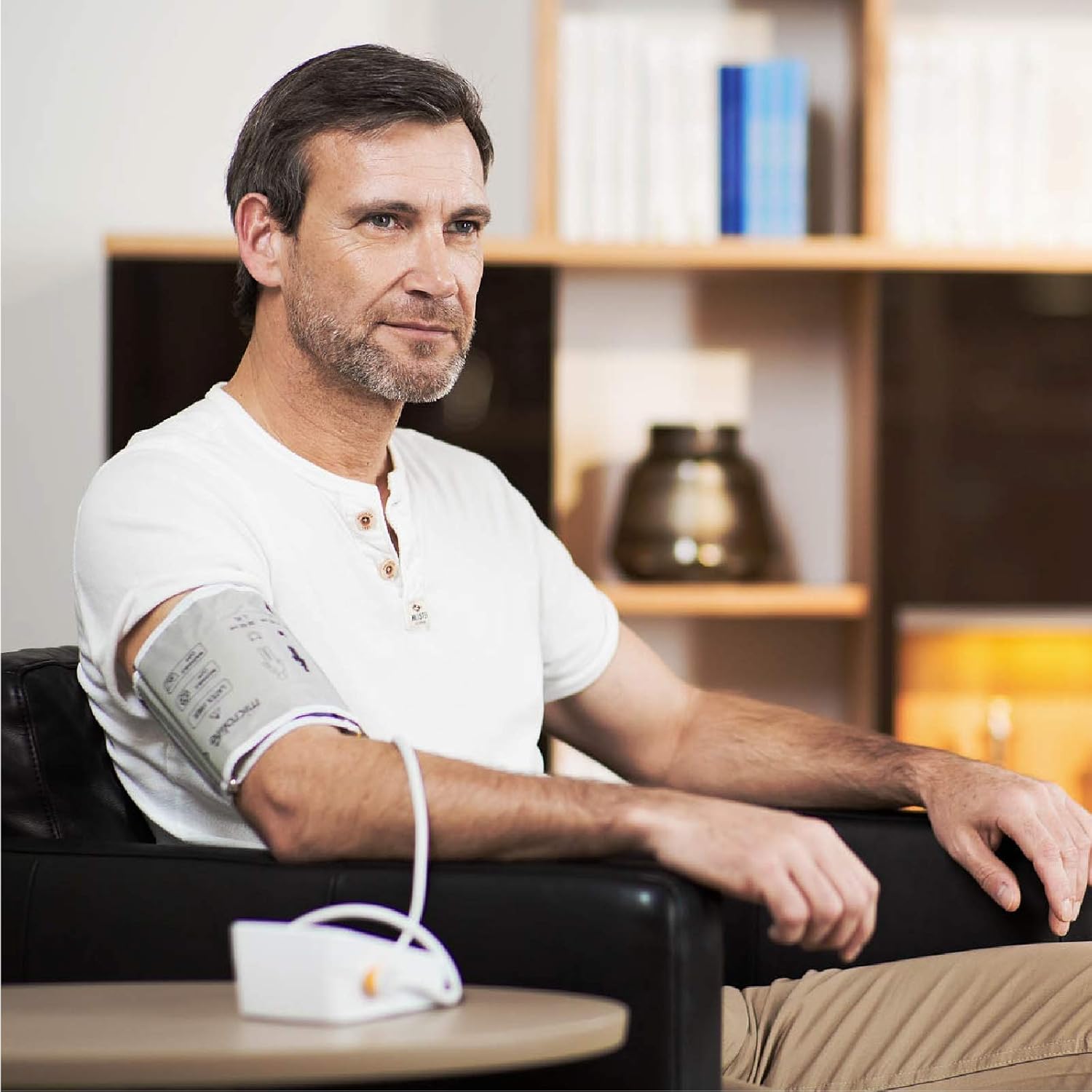 Note: Sit relaxed and keep your arm at heart level for accurate readings.
