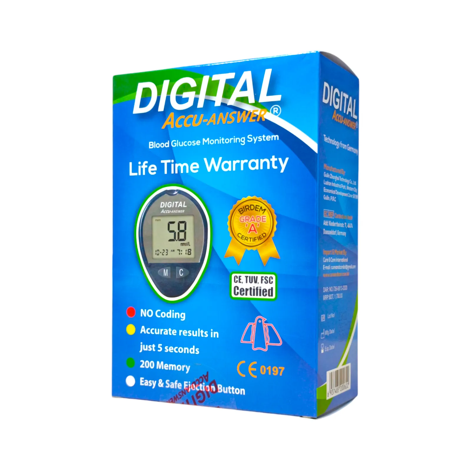 Take control of your health with the Digital Accu-Answer Blood Glucose Monitoring System—a fast, accurate, and user-friendly solution for daily blood sugar monitoring. Designed for convenience and reliability, this device delivers results in just 5 seconds, making it ideal for both home and clinical use.